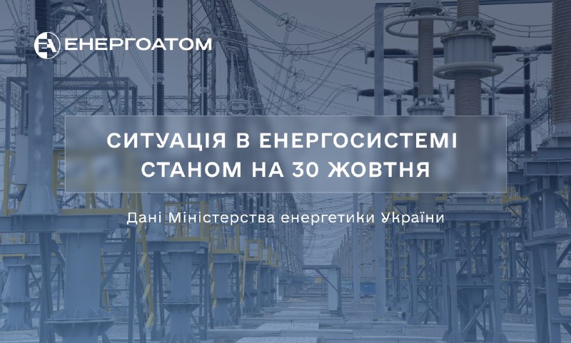 ℹ️Про ситуацію в українській енергосистемі станом на 3️⃣0️⃣ жовтня читайте тут 30.10.2025, Четвер | 12:03 Автор допису: Енергоатом ℹ️Про ситуацію в українській енергосистемі станом на 3️⃣0️⃣ жовтня читайте тут #міністерство_енергетики EA |FB😎|YT📹|Х👥|IN🔗|IG🕊|TH🧵 Джерело Друк / PDF