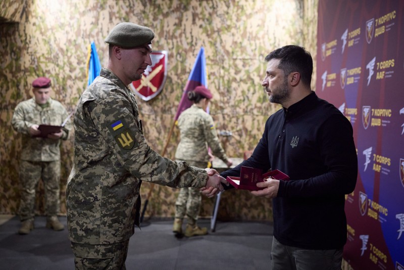 Президент заслухав доповідь про ситуацію в районі Покровська та відзначив воїнів нагородами на пункті управління 7-го корпусу швидкого реагування ДШВ