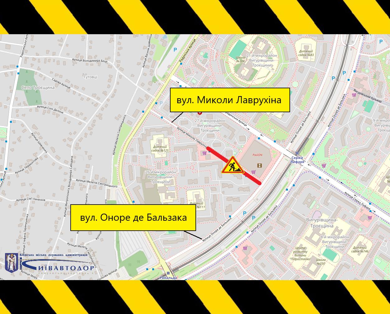 6 та 7 листопада частково обмежуватимуть рух вул. Миколи Лаврухіна в Деснянському районі столиці (+схема)