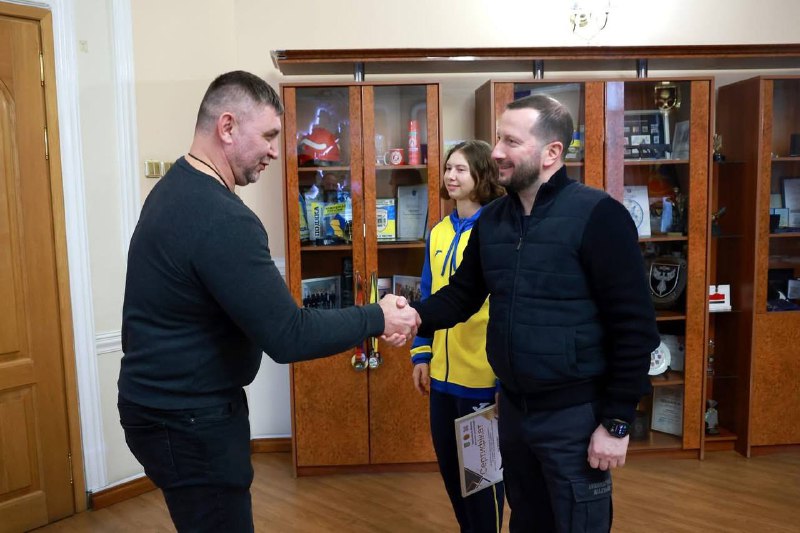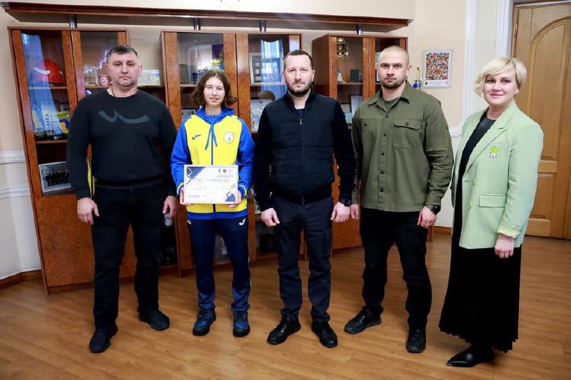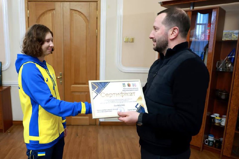 На підтримку підготовки до змагань вручив Єві сертифікат на 125 тис. грн — кошти надані з обласного бюджету.