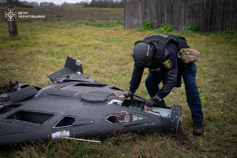 💥На Чернігівщині сапери ДСНС знешкодили бойові частини російських безпілотників, що впали на відкриту територію у Корюківському районі та не здетонували