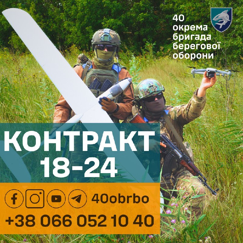 Хочеш вчитись, зростати і працювати в згуртованій команді? Долучайся до програми "Контракт 18-24" у 40 ОБрБО та отримуй якісну підготовку, надійне озброєння, грошову винагороду і повний соціальний пакет.