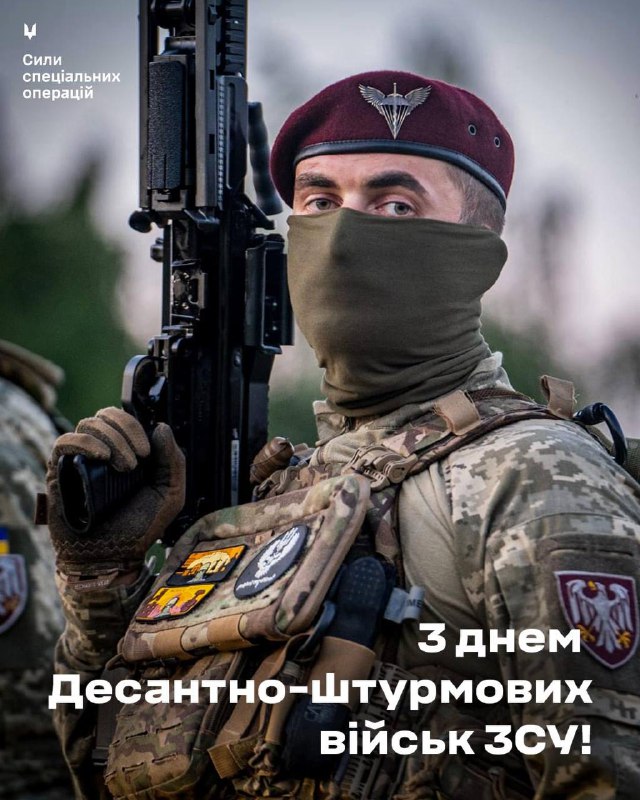 Вітаємо побратимів та посестер з Днем Десантно-штурмових військ! Разом до перемоги🇺🇦 8.11.2025, Субота | 10:29 Автор допису: Сили спеціальних операцій Збройних Сил України Вітаємо побратимів та посестер з Днем Десантно-штурмових військ! Разом до перемоги🇺🇦 Джерело Друк / PDF