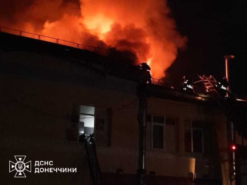 📍місто Дружківка, внаслідок обстрілу виникла пожежа в адміністративній будівлі, що не функціонує. На місці події працювали рятувальники, які ліквідували загоряння покрівлі будівлі на площі 750 кв. м.
