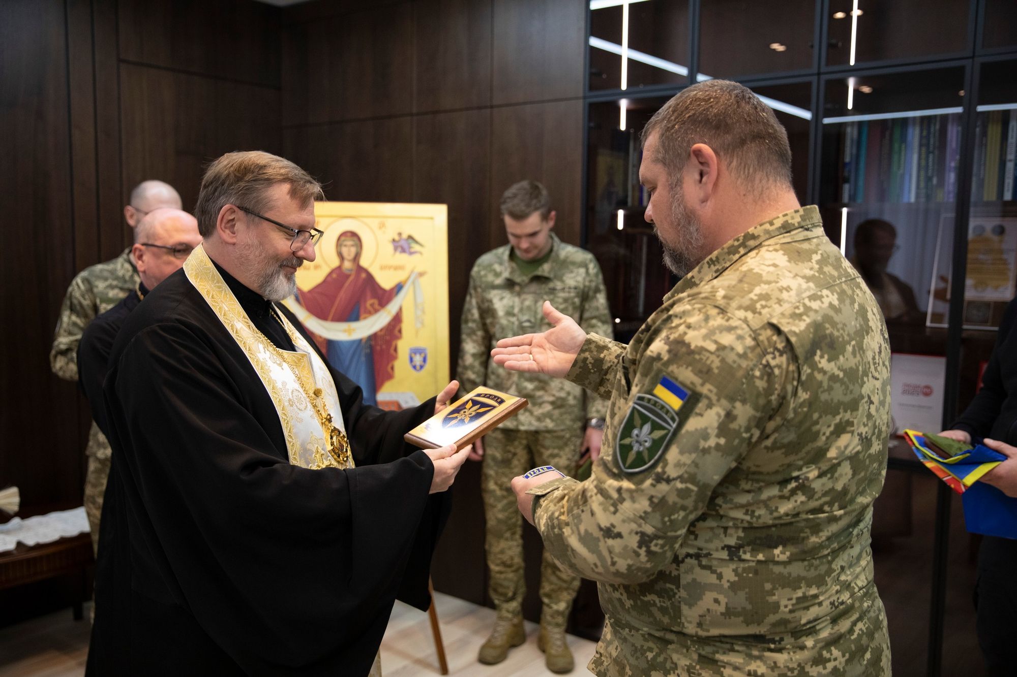 «Весь світ із захопленням спостерігає за героїзмом наших хлопців. Ваш бойовий досвід — це скарбниця сучасного людства: як зупинити агресора і творити простір життя, який ми, християни, називаємо миром. Українське військо — справжні миротворці. Саме тому Церкви в Україні вас підтримують», — сказав він.