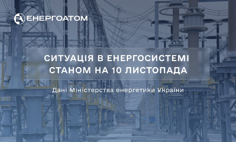 ℹ️Про ситуацію в українській енергосистемі станом на 1️⃣0️⃣ листопада ‌‎читайте тут