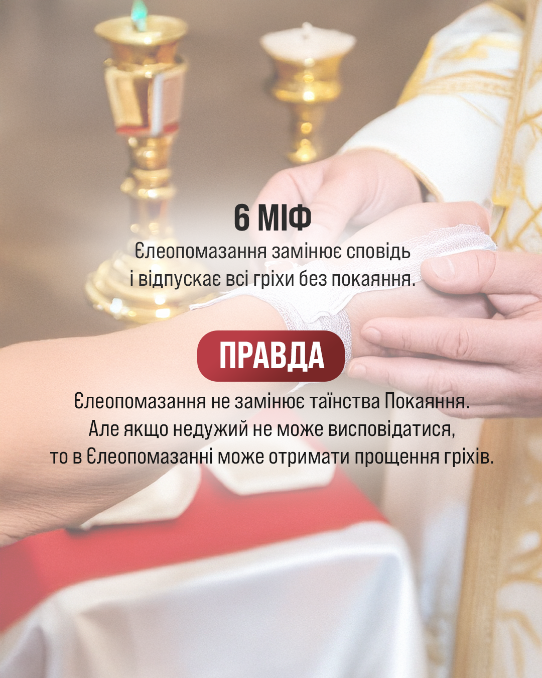 1. Єлеопомазання – це «останнє» таїнство, після якого людина обов’язково помирає.