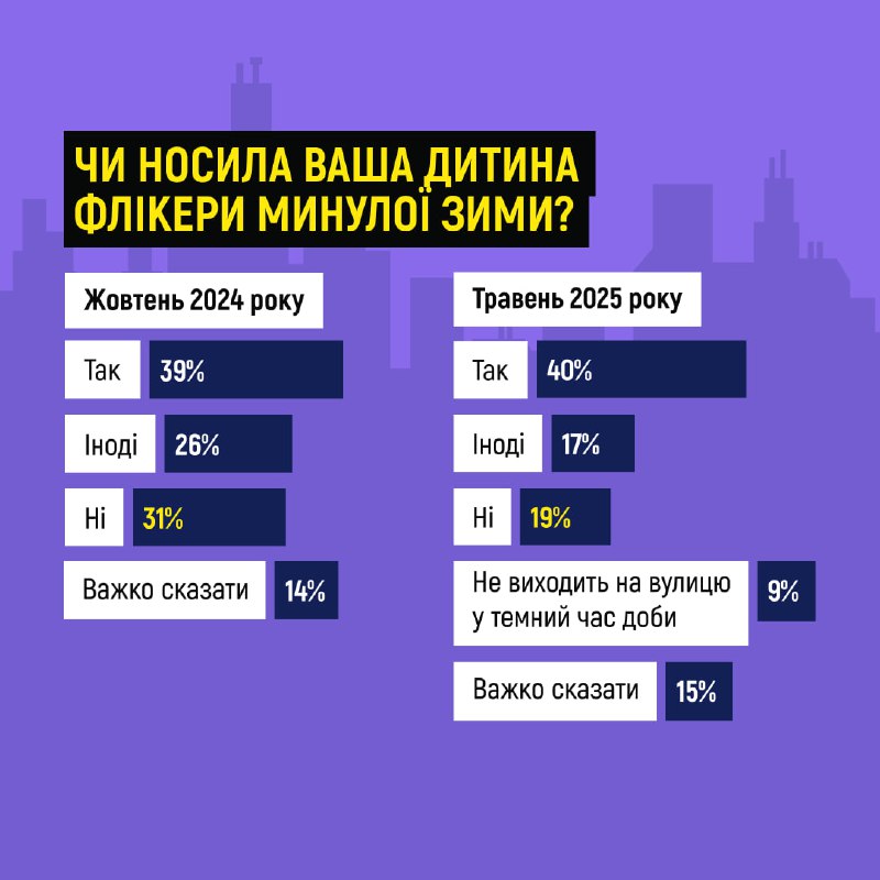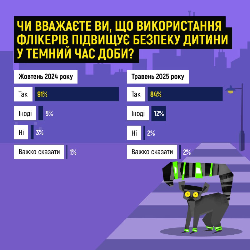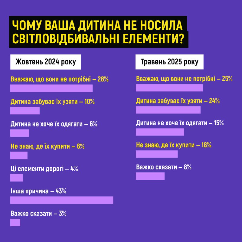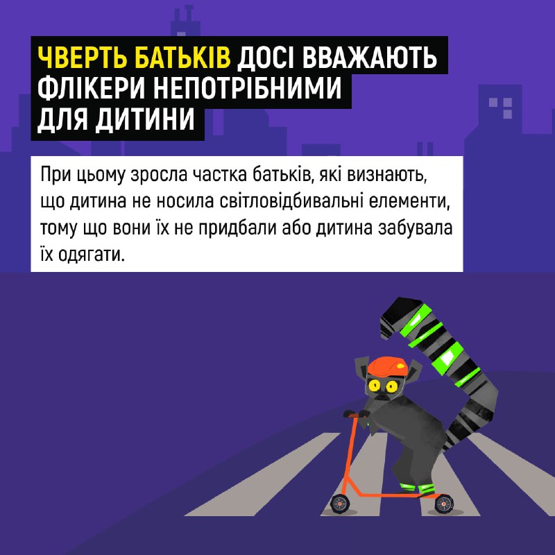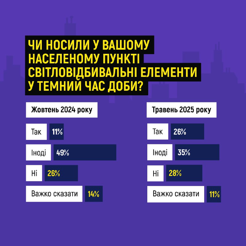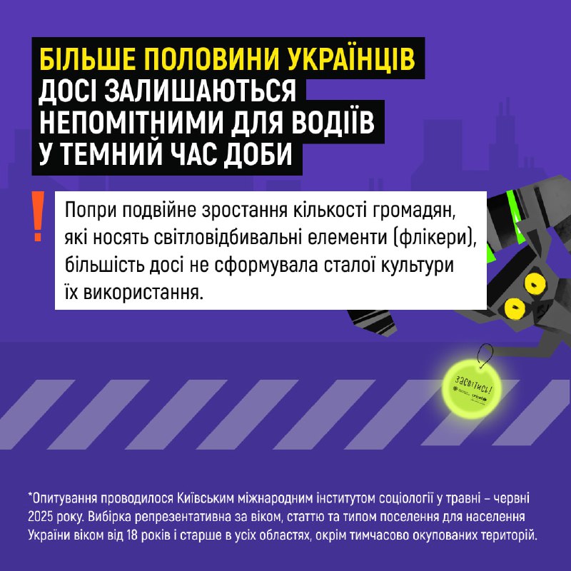 лише 1 із 3-х українців постійно користується світловідбивальними елементами💡, щоб бути помітним для водіїв у темряві —