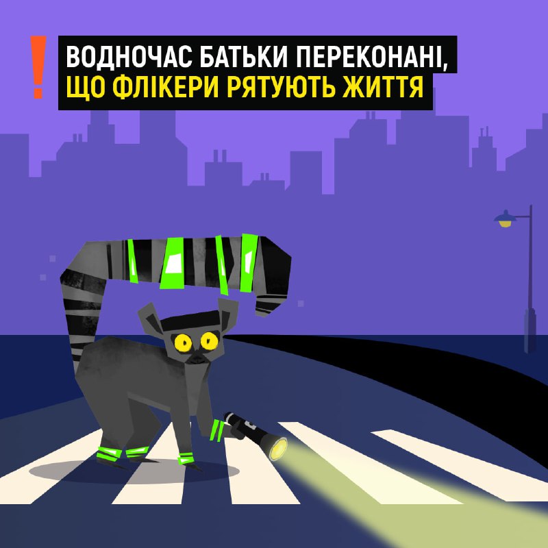 Саме тому ЮНІСЕФ разом із МВС, ДСНС та НПУ запускає другу хвилю зимової безпекової кампанії. Вона нагадує: флікери на одязі — це не дрібниця, а важлива звичка, що може врятувати життя 🔦