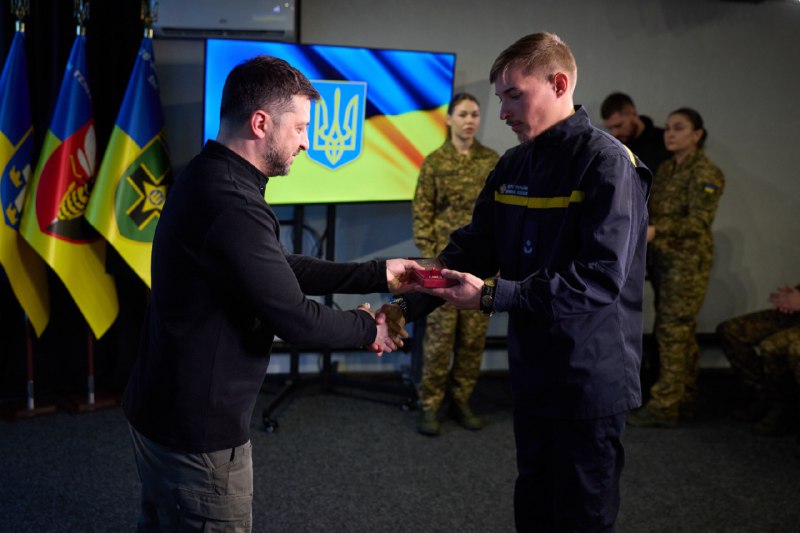 З нагоди третьої річниці визволення Херсона Президент України Володимир Зеленський вручив ордени «За мужність» ІІІ ступеня трьом рятувальникам Херсонщини ⤵️