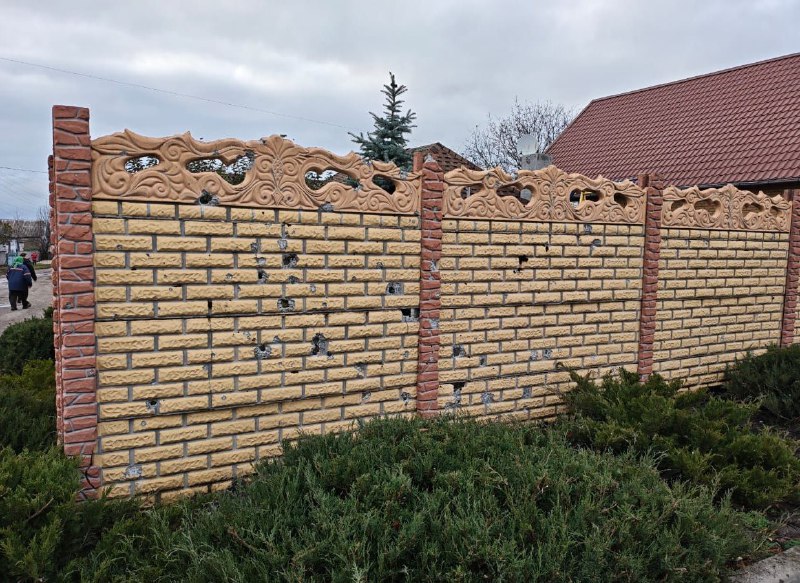 Пошкоджені ліцей, АЗС, торгівельний павільйон, дві багатоповерхівки і стільки ж приватних будинків, господарська споруда, вантажівка та лінія електропередач.