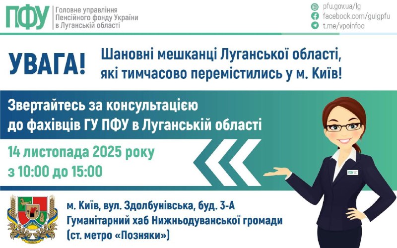 14 листопада у хабі Нижньодуванської громади відбудеться прийом внутрішньо переміщених осіб представником ГУ ПФУ в Луганській області.