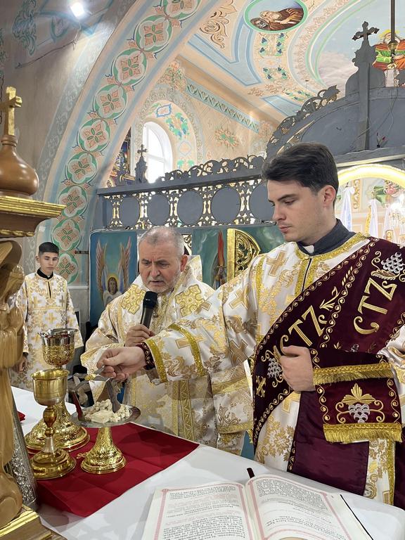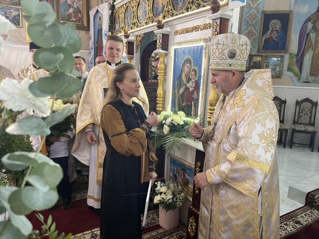 Духовна урочистість освячення оздоби храму зібрала у нього багато вірних та місцеве духовенства. Урочистість розпочалася із зустрічі преосвященного владики Дмитра Григорака на подвір’ї храму, після якої розпочалося богослужіння.