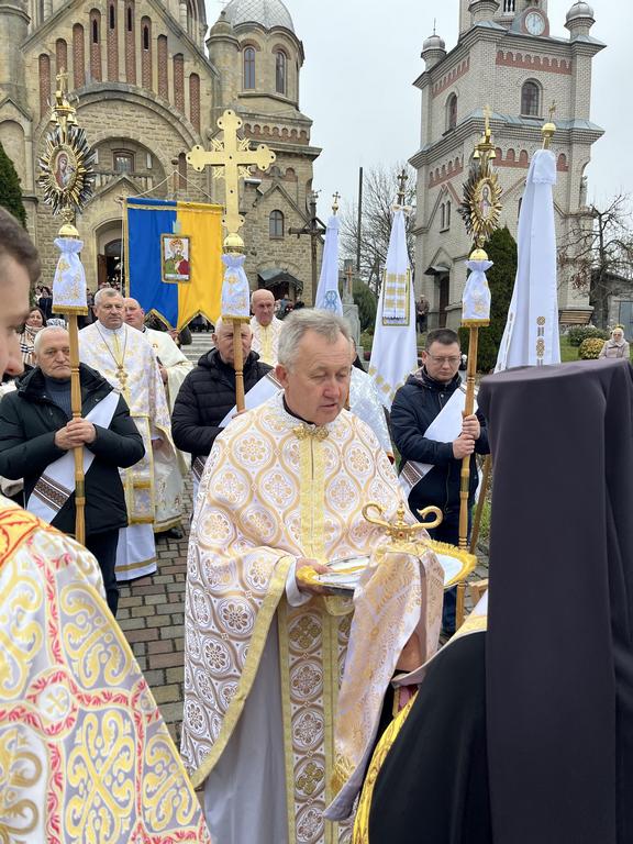Після подяк та привітань уся громада процесійно здійснила обхід навколо храму. Владика Дмитро разом з духовенством звершили Чин водосвяття та окропили усіх свяченою водою.