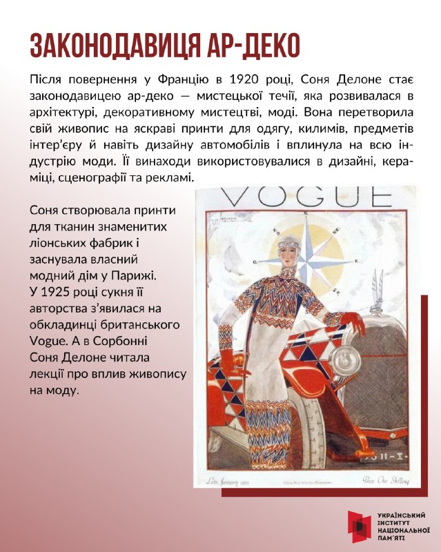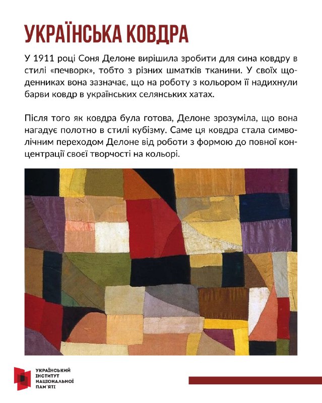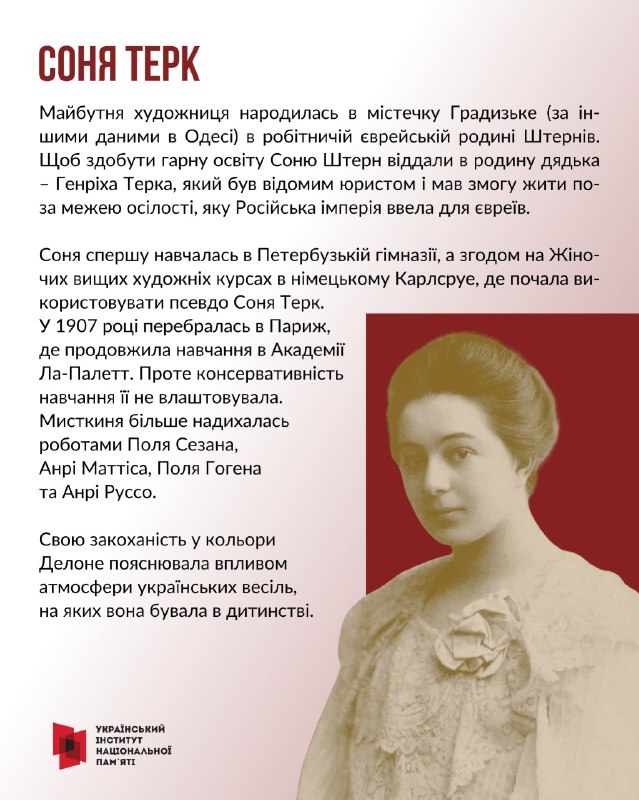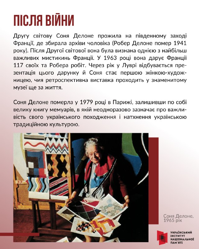 Соню Делоне світ знає, як французьку мисткиню, однак родом вона була з українського Півдня, а в своїх мемуарах неодноразово згадує, що її розуміння кольору сформувалось під впливом української традиційної культури.