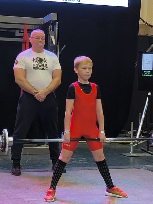 🥇Цей потужний спортивний тандем виборов на двох чотири золоті медалі. Ярослав став чемпіоном у становій тязі в категорії до 44 кг. Його батько Віталій здобув три золоті нагороди у таких дисциплінах, як станова тяга, жим лежачи та суворий підйом на біцепс.