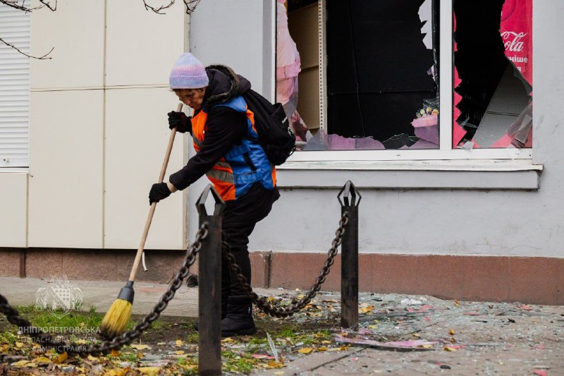 У Дніпрі, в самому епіцентрі нічної атаки, доволі жваво. Люди працюють, щоб якомога швидше привести все до ладу. Прибрати понівечене та замостити потрощене.