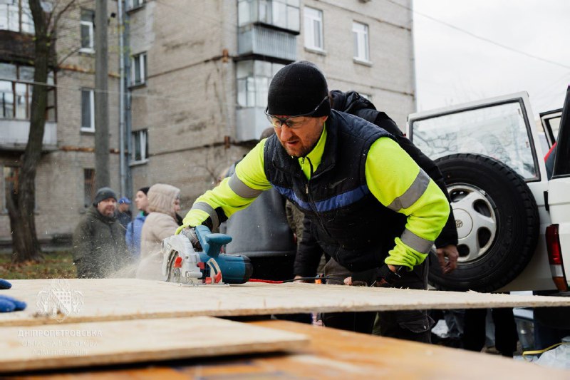 Як завжди поруч з дніпрянами й благодійники. Вони видають будівельні матеріали, гуманітарку.