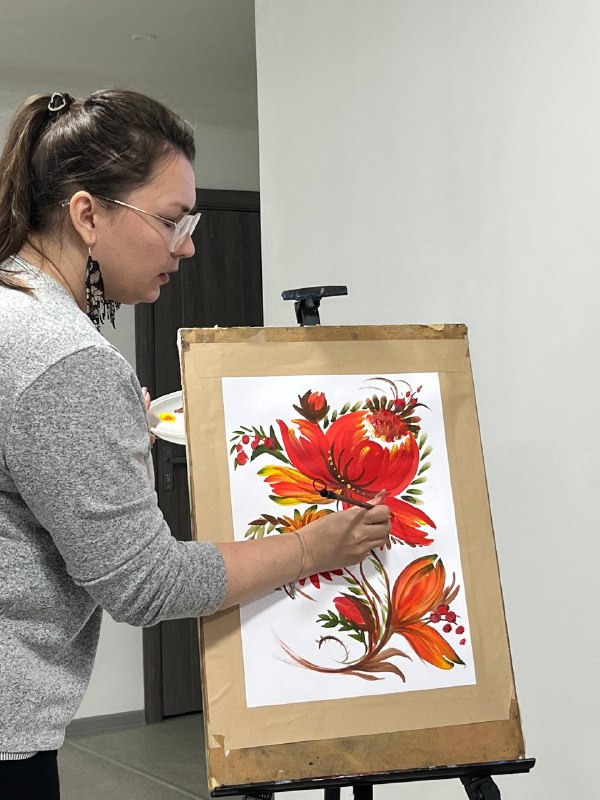 У Центрі «Вільні разом» у Черкасах відбулося арттерапевтичне заняття з малювання петриківського розпису.
