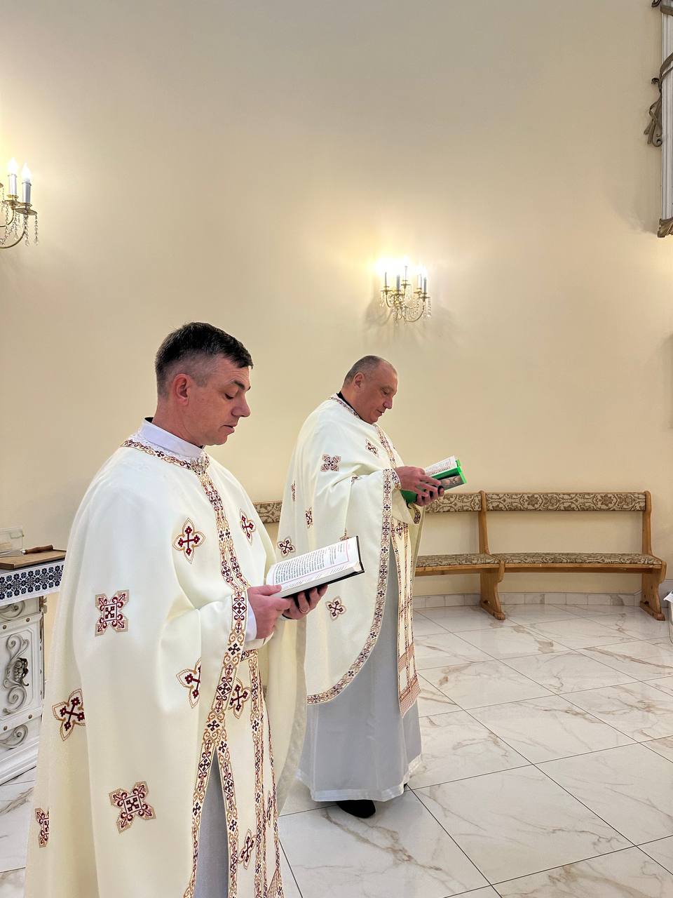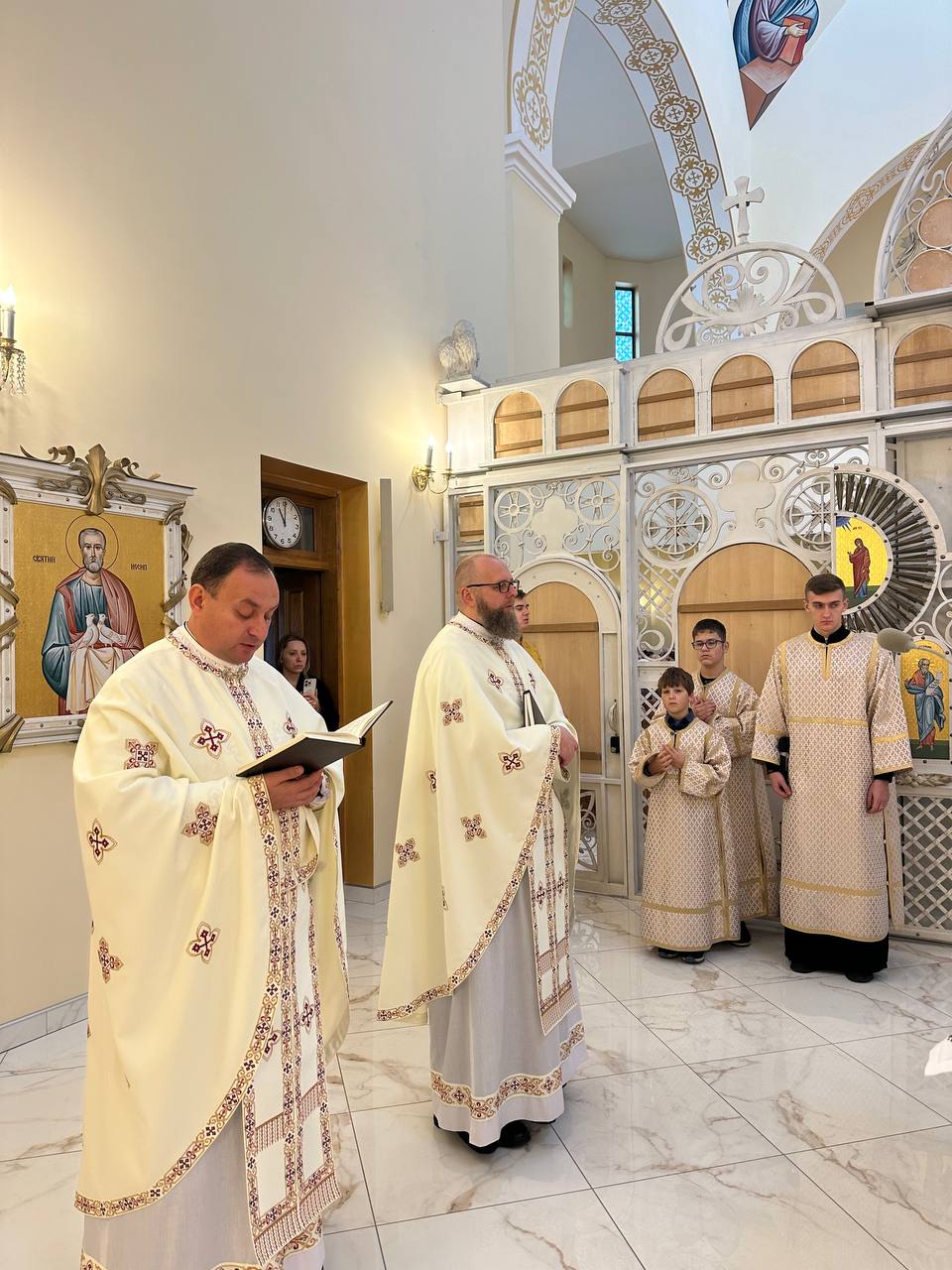 У часі Архієрейської Божественної Літургії Владиці співслужили: ігумен монастиря святого Йосифа Львівської провінції Згромадження Найсвятішого Ізбавителя та довголітній парох парафії о. Андрій Цікало, ЗНІ, протоігумен Згромадження о. Володимир Борейко, новопризначений парох о. Микола Туркот, ЗНІ, а також отці-редемпотристи та священнослужителі Івано-Франківської Архієпархії УГКЦ.