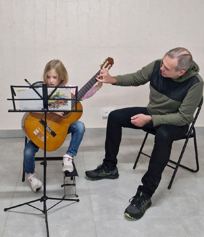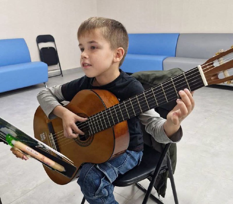 Так у селі Тарасівка Київської області з жовтня 2025 року з’явився куточок живої музики. Викладач по класу гітари Володимир Борисенко відкрив двері для дітей внутрішньо переміщених осіб – тих, хто приїхав з Луганщини, Донеччини, Херсонщини. Дітей, які втратили дім, але не втратили бажання вчитися й творити. Тут вони отримали інструменти, можливість торкатися струн, чути перші акорди, переживати хвилювання перед виконанням і радість від кожного вдало взятого звуку.