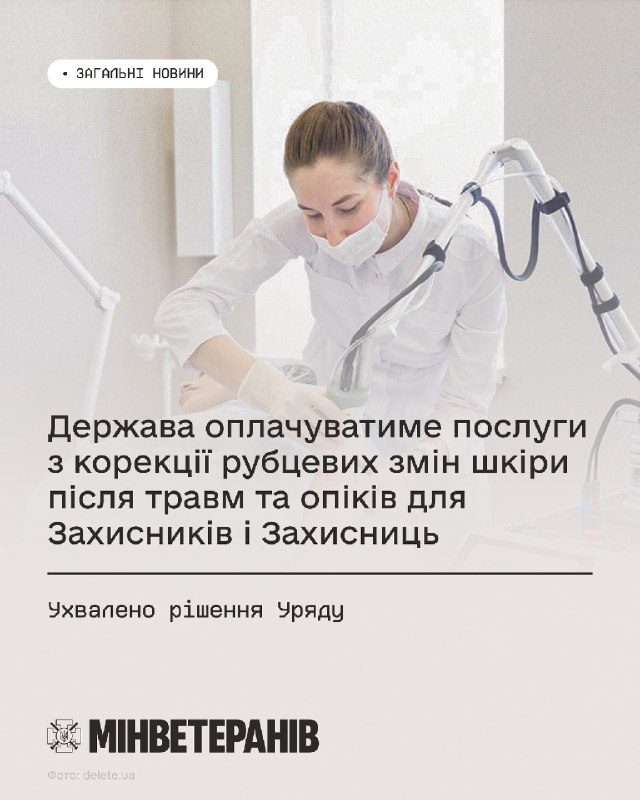 Держава оплачуватиме послуги з корекції рубцевих змін шкіри після травм та опіків для Захисників і Захисниць 27.11.2025, Четвер | 14:20 Автор допису: Військово-Морські Сили Збройних Сил України Держава оплачуватиме послуги з корекції рубцевих змін шкіри після травм та опіків для Захисників і Захисниць Детальніше Джерело Друк / PDF