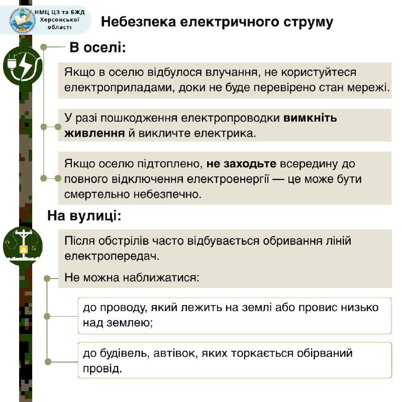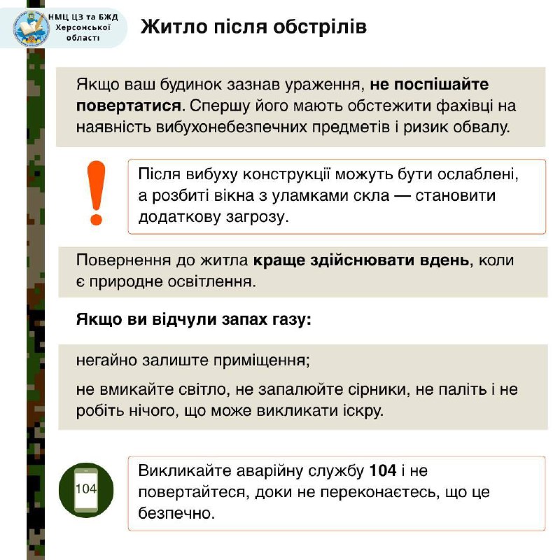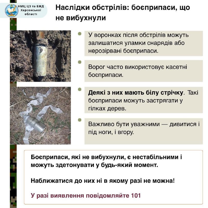 Пересування територією після обстрілу теж є ризикованим, адже після влучань можуть залишатися нерозірвані боєприпаси, уламки снарядів та пошкоджені електролінії.