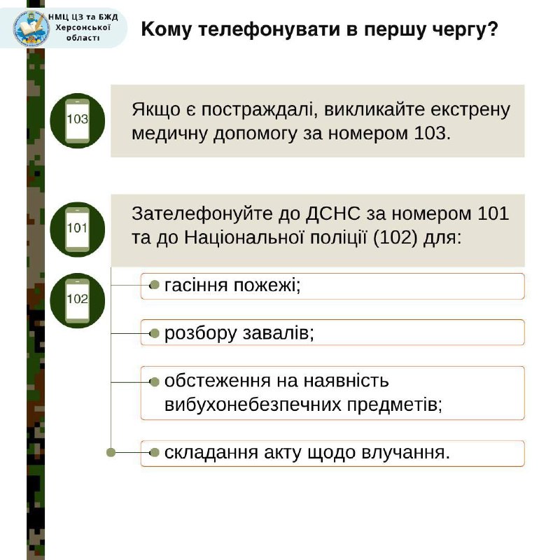 Головна загроза — повторні удари, тож одразу залишати укриття після вибуху — небезпечно. Не варто також наближатися до місць влучань чи намагатися гасити пожежі самотужки.