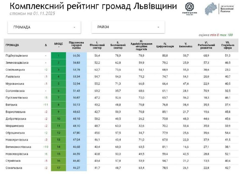 ✔️ 10 найуспішніших громад області станом на 1 листопада: