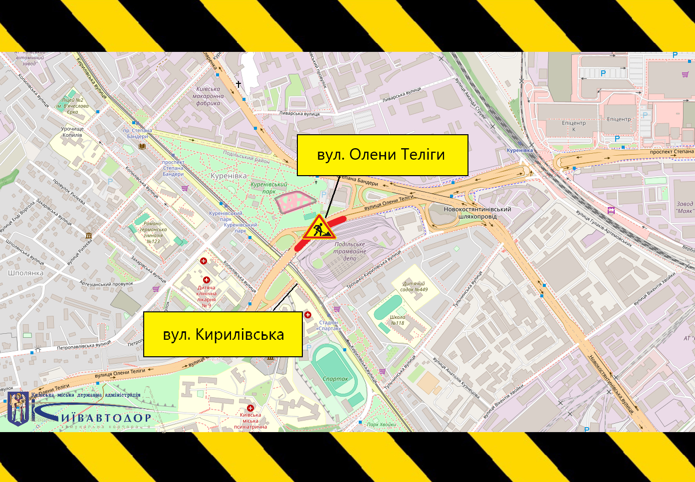 29 листопада частково обмежуватимуть рух вулицею Олени Теліги в Подільському районі столиці (+схема)