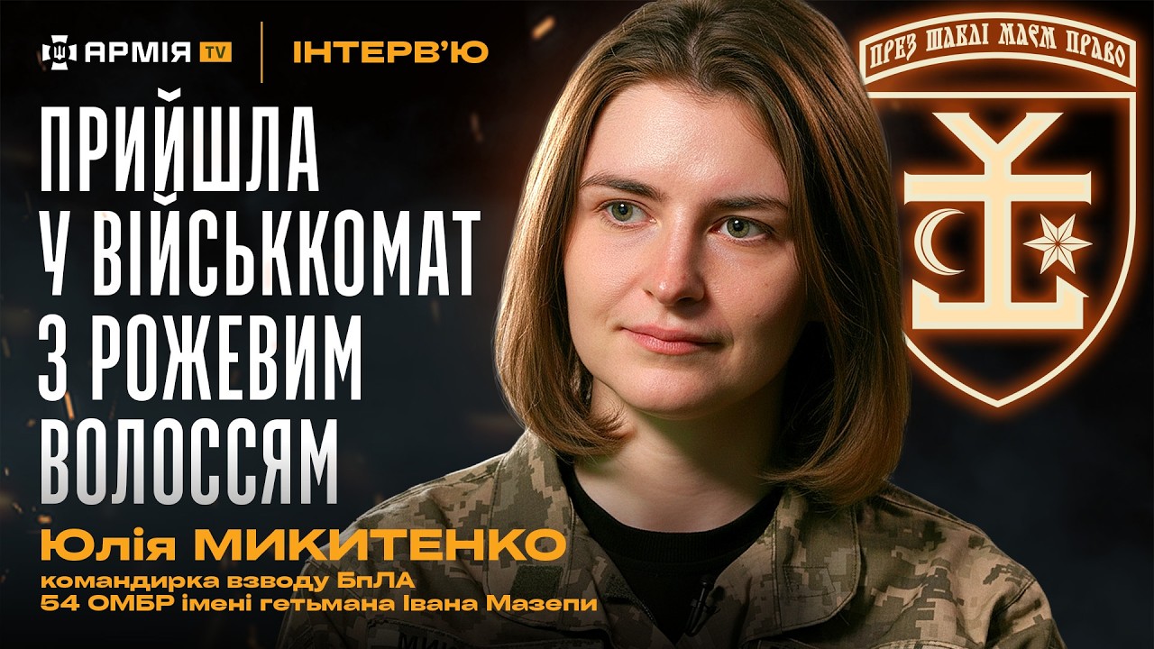 «Частина тих, хто пішли від мене, просилися потім назад, але я взяла не всіх», — розповідає у новому інтерв’ю на Армія TV командирка взводу БпЛА 54 механізованої бригади Юлія Микитенко. Вона пригадує участь у Революції Гідності, згуртованість студентів Могилянки та рішення доєднатися до війська. Виклики, які спіткали Юлію, ще більше надихнули її на боротьбу. Вона описує свої переживання, коли в 22 роки стала командиром розвідвзводу, про несприйняття її підлеглими та підтримку чоловіка.