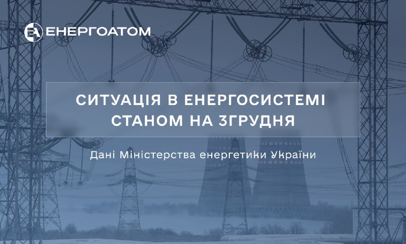 ℹ️Про ситуацію в українській енергосистемі станом на 3️⃣ грудня ‌‎читайте тут