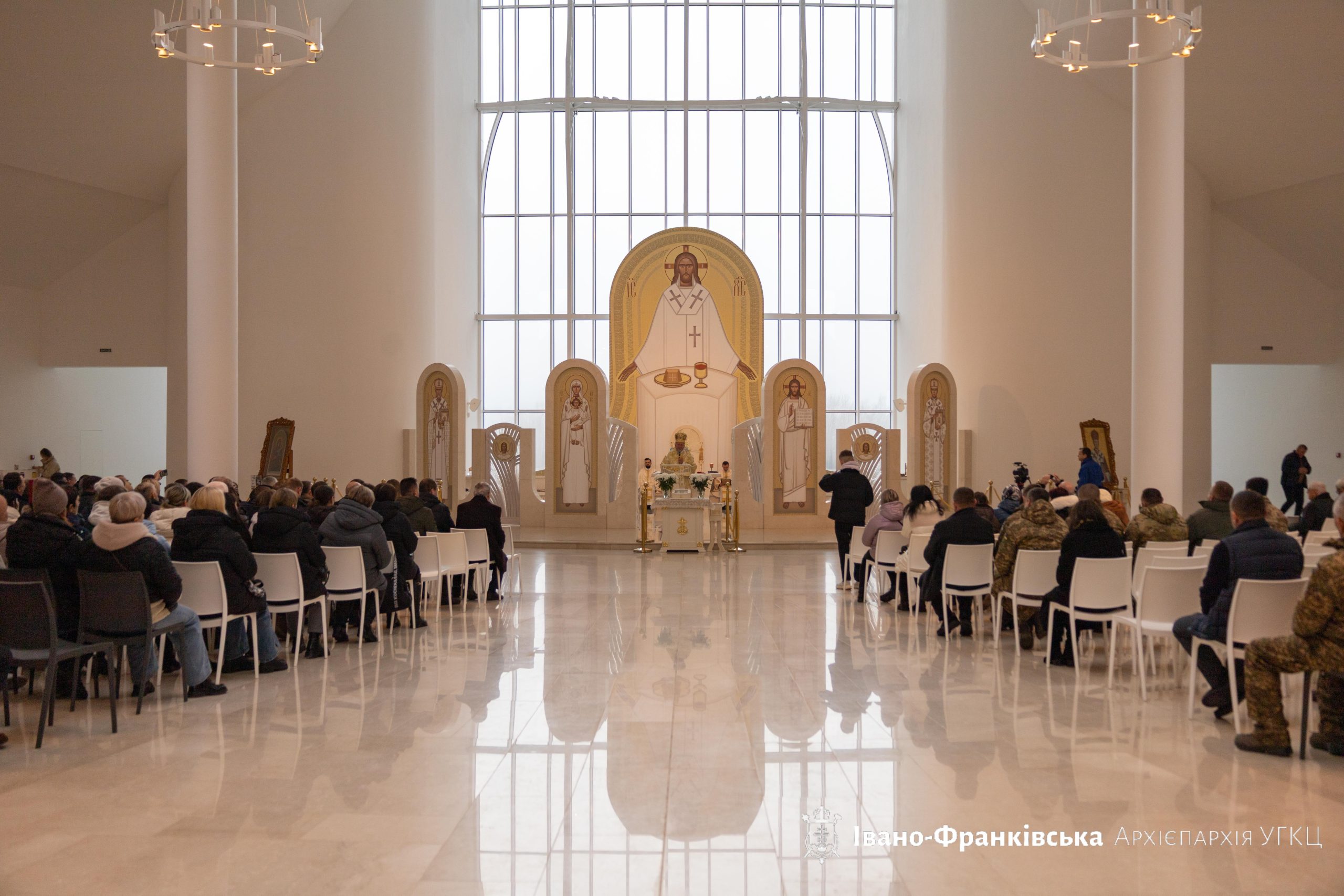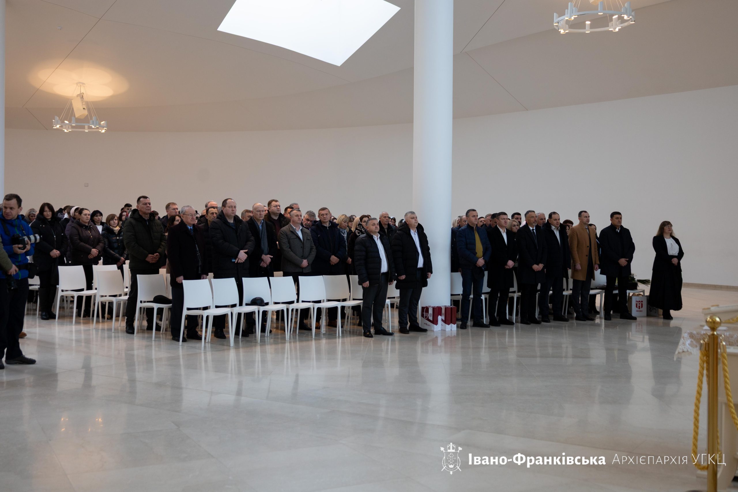 У підземній базиліці Блаженного Симеона Лукача чисельно зібралися представники влади різних рівнів, ректори університетів, військовослужбовці Збройних сил України та Національної гвардії України, молодь і вірні.