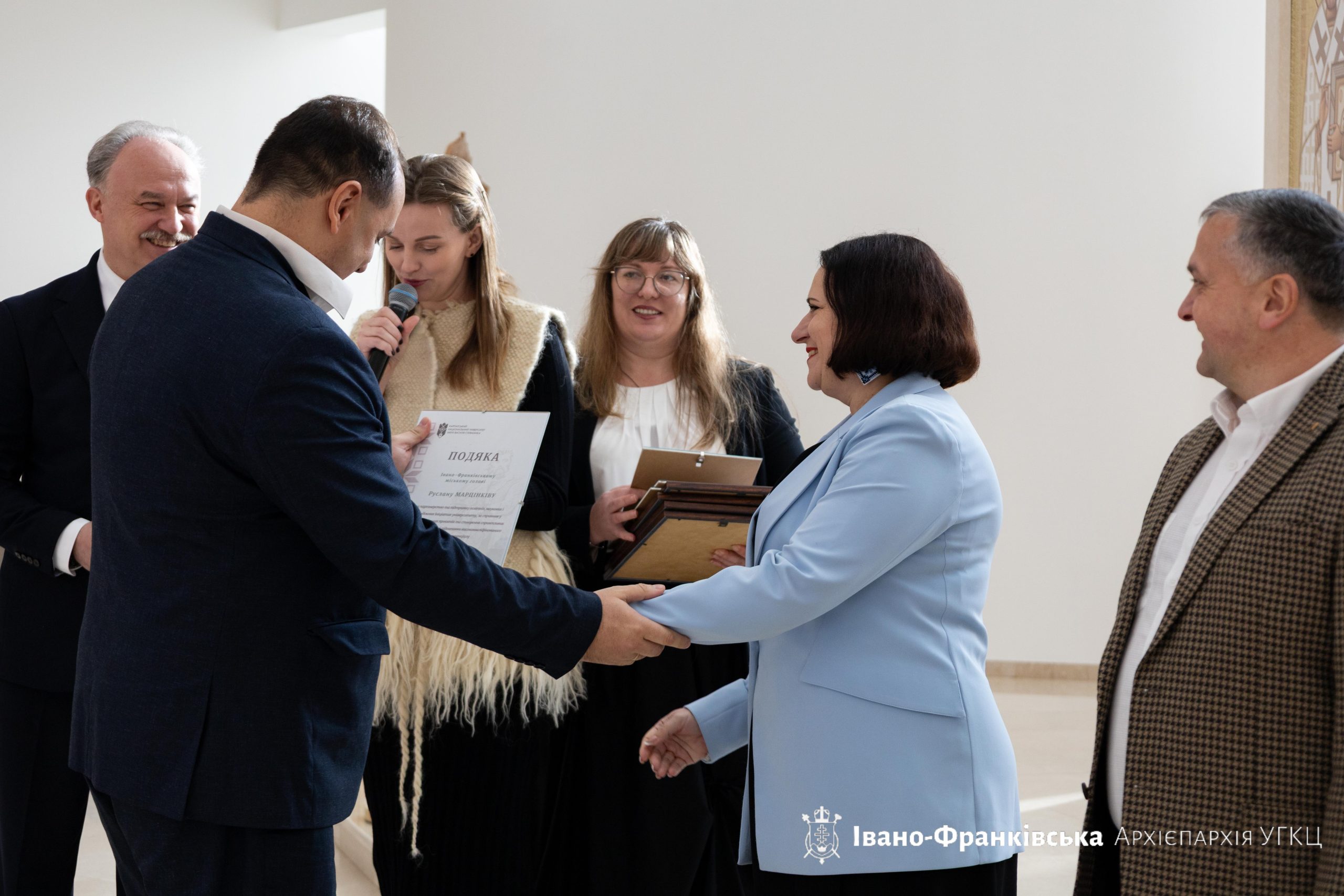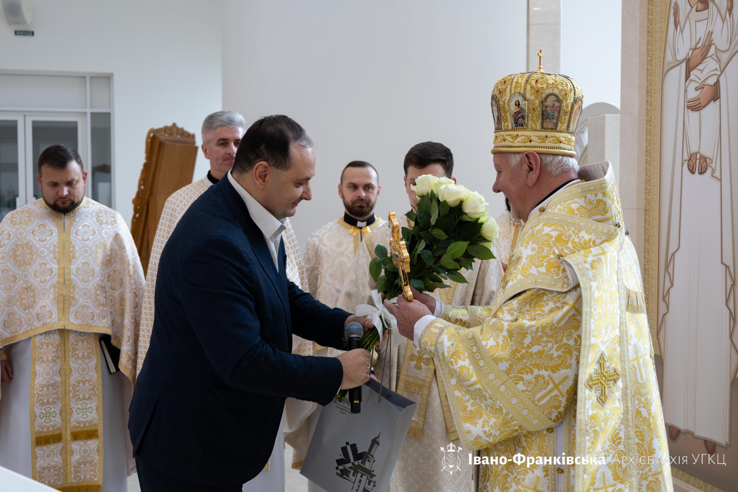 Після моління Архієрей вручив подячну грамоту п. Юрію Стефанчуку, директору Івано-Франківського регіонального відділення Асоціації міст України, за працю на благо місцевих громад Прикарпаття та вагомий внесок у розвиток громадянського суспільства.