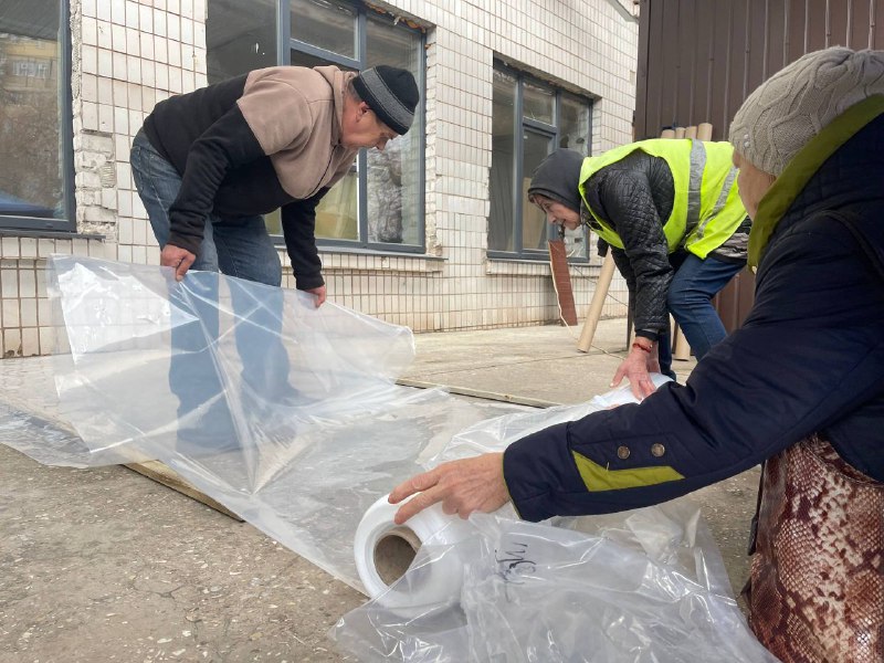 Як завжди підтримують мешканців і благодійники. Вони привезли osb-плити, плівку. Видавали й теплі ковдри. Спілкувався з людьми й психолог.
