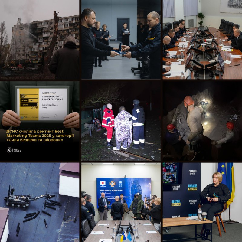 Головні події тижня 28.11. – 5.12.2025 Володимир Зеленський: у Києві та області на місцях російських ударів працюють наші екстрені служби 6.12.2025, Субота | 10:56 Автор допису: Державна служба з надзвичайних ситуацій Головні події тижня28.11. – 5.12.2025 Володимир Зеленський: у Києві та області на місцях російських ударів працюють наші екстрені служби На Запоріжжі Ігор Клименко відзначив рятувальників державними нагородами та відомчими відзнаками Голова ДСНС обговорив поглиблення співпраці з новим Послом Королівства Данія в Україні ДСНС очолила рейтинг Best Marketing Teams 2025 у категорії «Сили безпеки та оборони» Дніпропетровщина: внаслідок російської атаки загинув 12-річний хлопчик, троє людей постраждали Понад 14 діб тривала рятувальна операція в одній з шахт України Київщина: унікальну операцію з розмінування провели фахівці ДСНС у Вишгороді Піротехнічні підрозділи ДСНС завершили навчання із використання нових вибухозахисних костюмів від Уряду Японії та ПРООН Наталія Яшан розказала про роботу медичних підрозділів ДСНС 🆘 Сайт • Fb • X • IG • YT • TT Джерело Друк / PDF