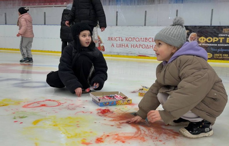 Діти писали свої бажання на кульках і разом випускали їх у небо, малювали просто на льоду, із захопленням дивилися виступи фігуристів. А ще познайомилися з гравцями дорослих і дитячих хокейних команд «Одещина».