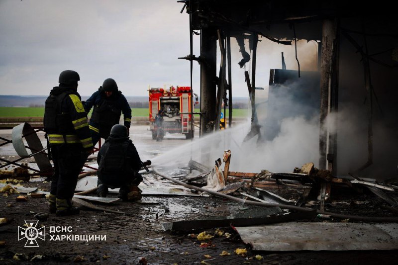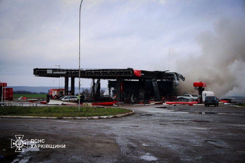 🔺У Нововодолазькому районі внаслідок влучання по АЗС виникла пожежа: горіли приміщення АЗС та автомобілі. За попередніми даними, постраждали 6 людей.