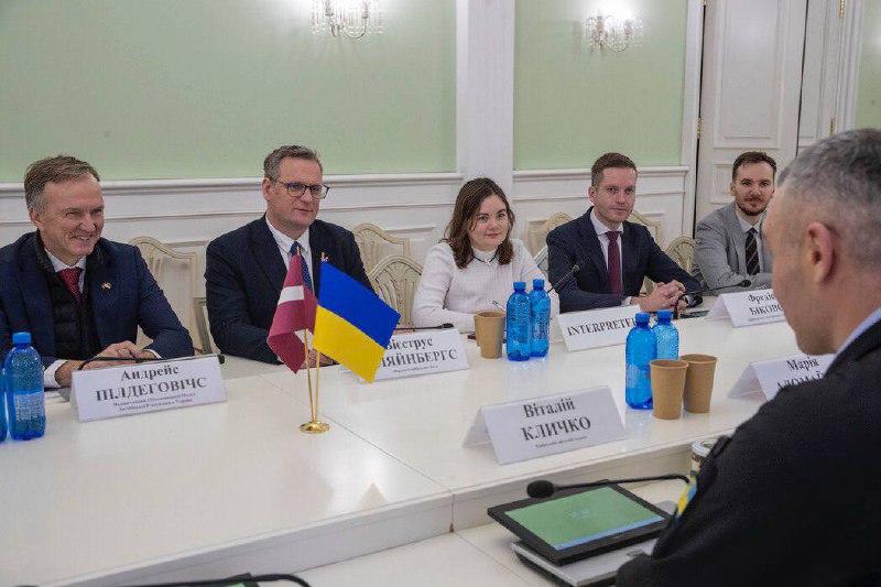 Зустрівся з мером міста-побратима Києва – Риги Вієстурсом Кляйнберґсом та делегацією мерії столиці Латвії, які прибули до Києва.