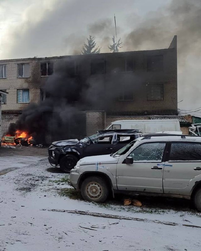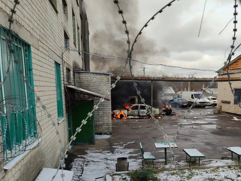 «Герані» атакували райвідділ поліції в Городні. 5 вибухів. Виникла пожежа. Є руйнування. Також пошкоджені автівки, дві з яких знищені вогнем. Пошкоджені близько десятка житлових будинків.