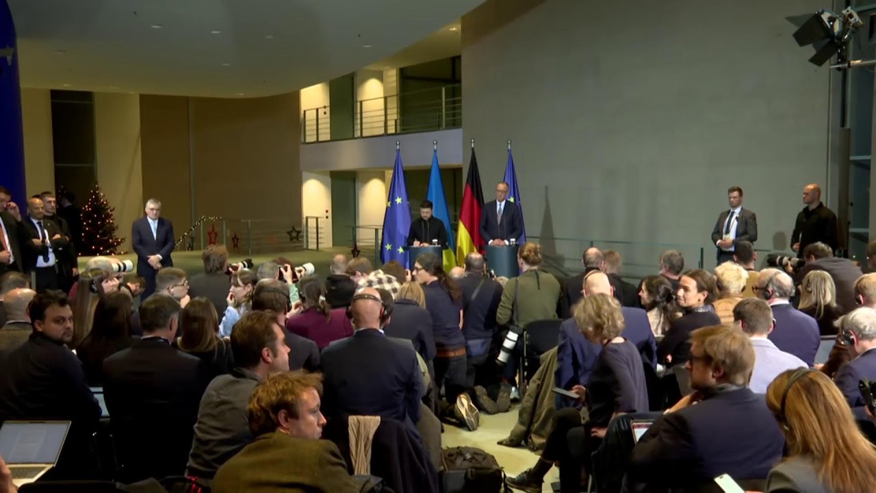 Спілкування Володимира Зеленського і Фрідріха Мерца з медіа 15.12.2025, Понеділок | 19:09 Автор допису: Офіс Президента України Спілкування Президента України Володимира Зеленського і Федерального канцлера Німеччини Фрідріха Мерца з медіа. Джерело Друк / PDF
