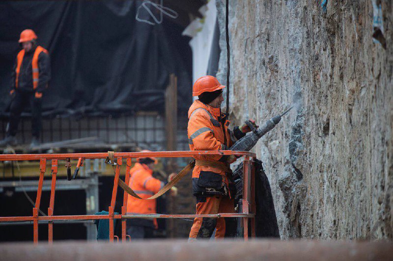 Роботи відбуваються в складних гідрогеологічних умовах та наявності розгалуженої мережі комунікацій на різних глибинах залягання, в щільній міській забудові.