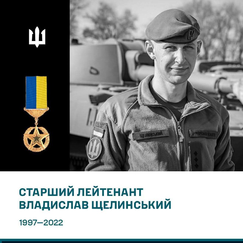 УКАЗОМ ПРЕЗИДЕНТА УКРАЇНИ №895/2025 від 05.12.2025 командиру батареї самохідного артилерійського дивізіону миколаївських морпіхів старшому лейтенанту ЩЕЛИНСЬКОМУ Владиславу Олексійовичу присвоєно звання Герой України з удостоєнням ордена «Золота Зірка».