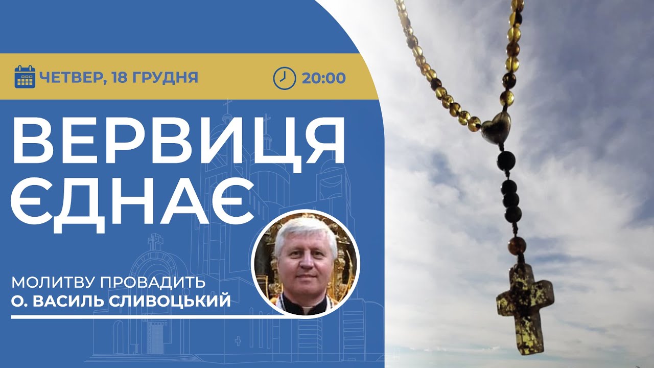 18 грудня молитву на вервиці в рамках ініціативи «Вервиця єднає» буде провадити о. Василь Сливоцький зі спільнотою «Матері у молитві» з Праги (Чехія). Початок молитви о 20-00 за київським часом.