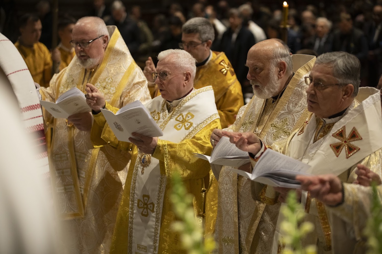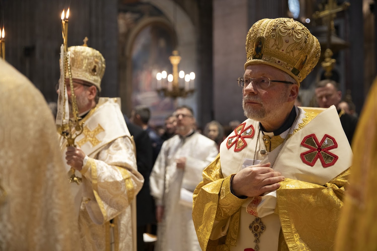 Наприкінці Божественної Літургії Патріарх висловив вдячність владиці Глібові Лончині, який протягом семи років був апостольським адміністратором єпархії Святого Володимира Великого в Парижі.