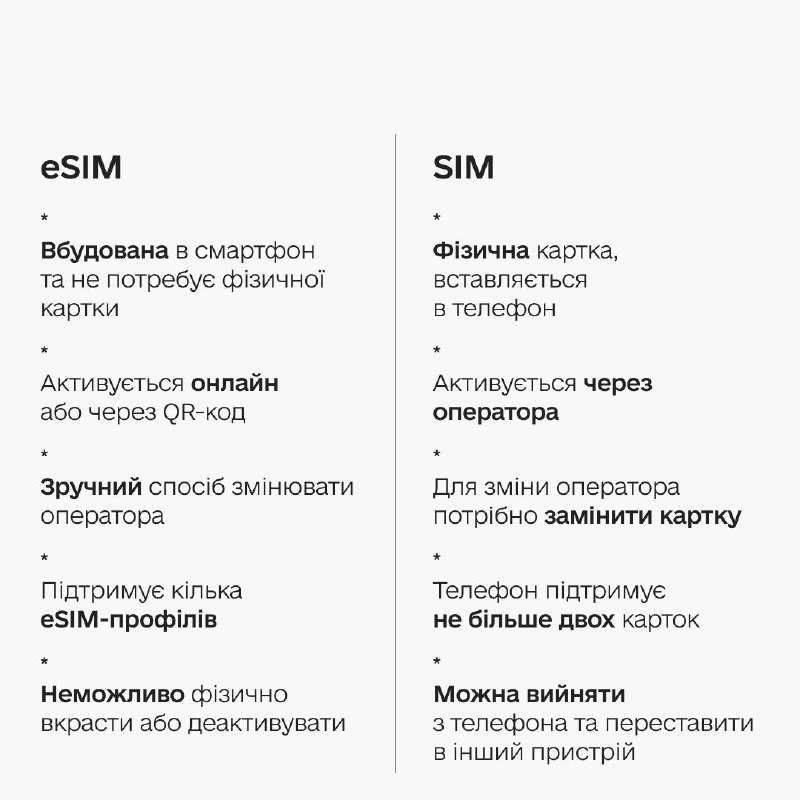 Змінюйте SIM або обирайте eSIM, якщо: ✅ SIM зношена — виникають перебої або нестабільний сигнал. ✅ Потрібен резервний оператор — eSIM дає змогу швидко перемикатися між мережами. ✅ Потрібна дистанційна активація — eSIM підключається онлайн без відвідування салону.