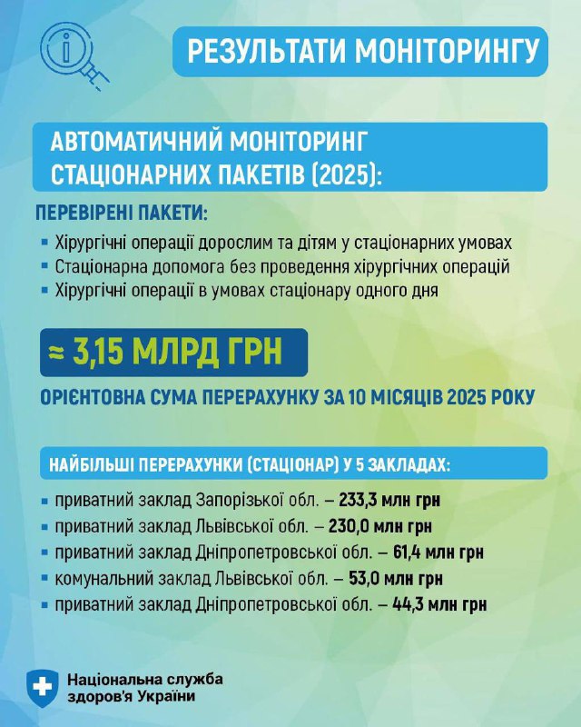 Станом на 18 грудня 2025 року сума перерахунку фактичної вартості наданих послуг за цими пакетами за 10 місяців 2025 року становить близько 3,15 млрд грн. При цьому 568,9 млн грн припадає лише на чотири приватні заклади.