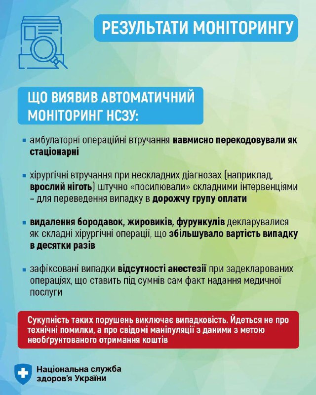 ⚡️НСЗУ оприлюднила результати автоматичного моніторингу за окремими пакетами медичної допомоги у 2025 році.