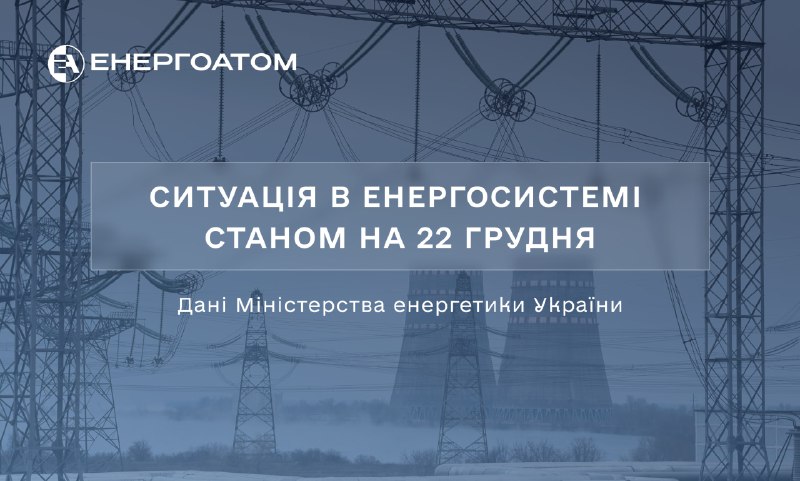 ℹ️Про ситуацію в українській енергосистемі станом на 2️⃣2️⃣ грудня ‌‎читайте тут