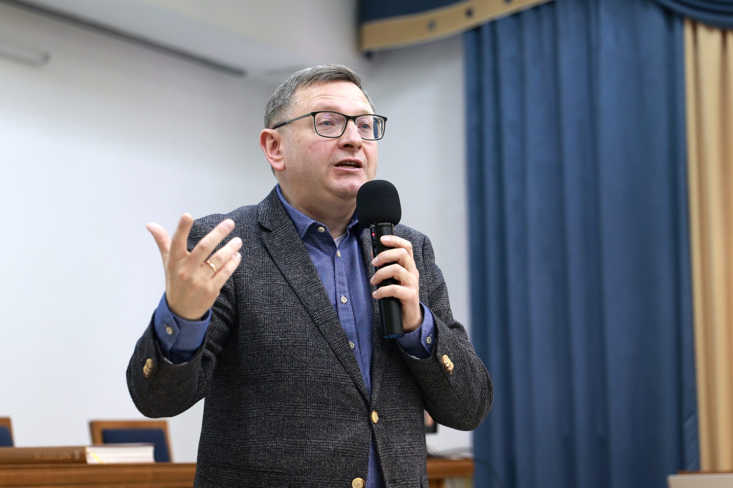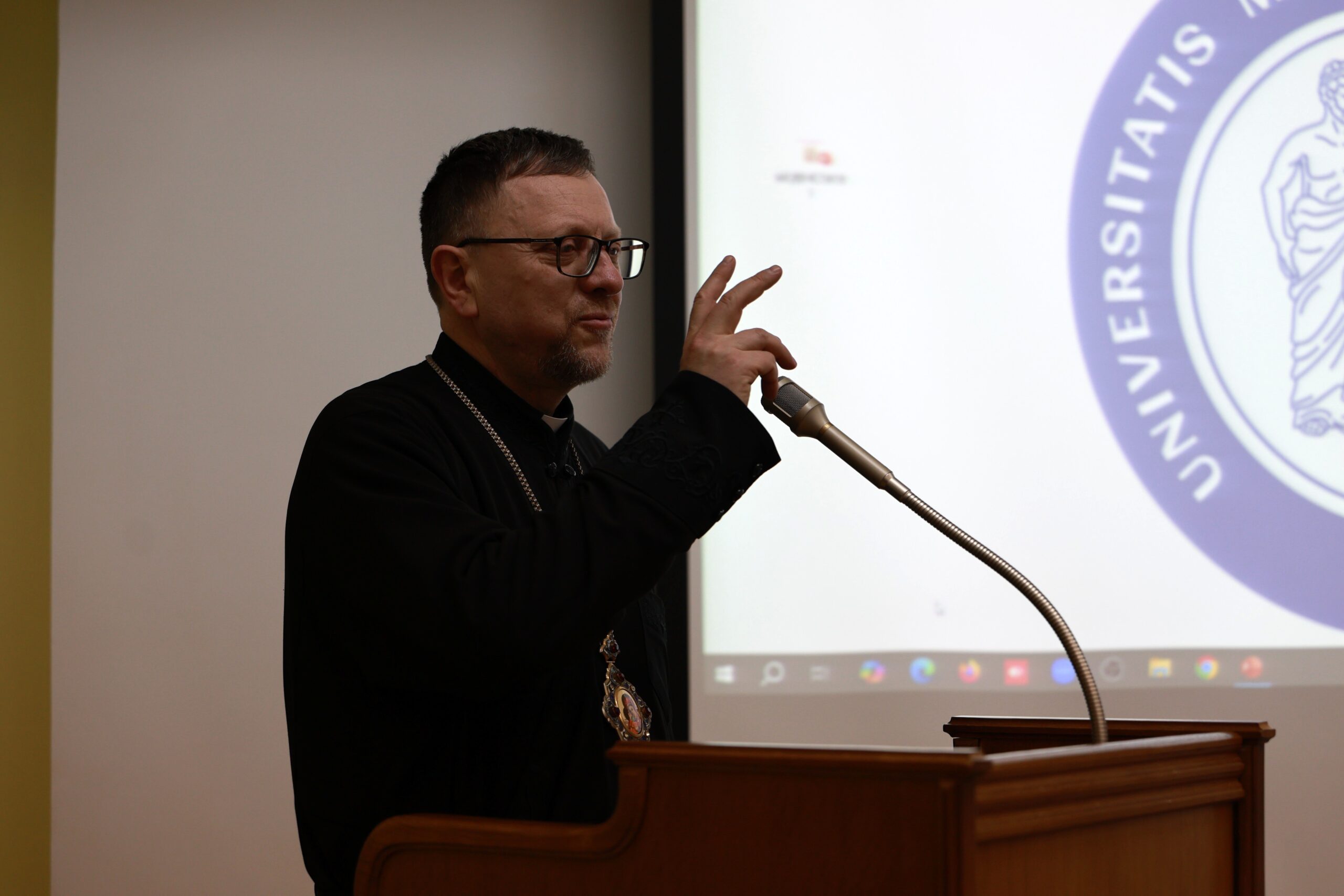 Після вступного слова єпископа з лекцією про вплив Митрополита Андрея Шептицького на медичне життя виступив Михайло Перун – президент благодійної організації «Фундація “Андрей”», доцент кафедри богослов’я Українського католицького університету.